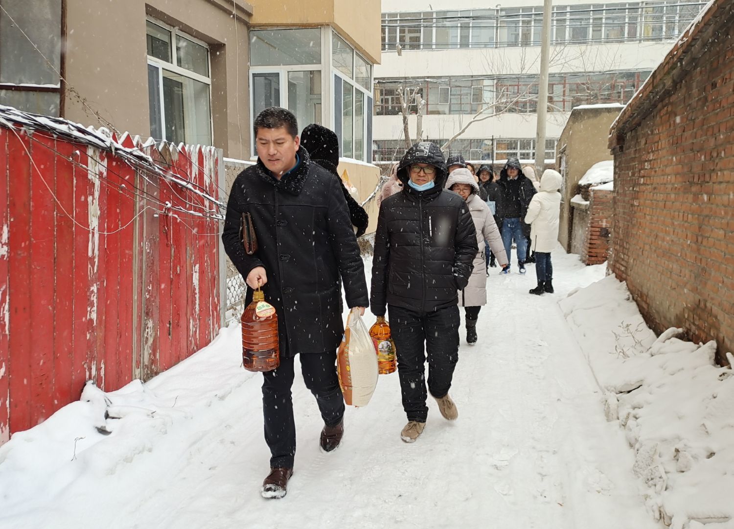 月25日,在公司党总支书记刘冰南、经理郭海滨、党总支副书记郑德志的带领下,公司党总支全体党员冒着寒雪来到社区慰问生活困难家庭,为贫困户送去米、油、面、口罩、洗手液等慰问品,同时送上公司党总支的温暖和关怀。