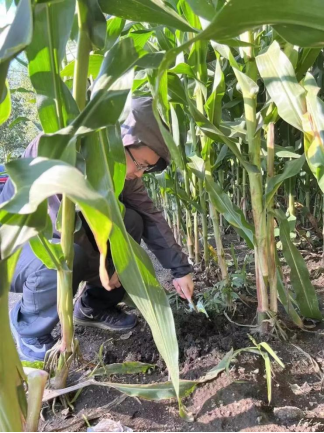 五月中旬选用南区土地种植玉米,农学专业教师自主选种,通过对公司当地气候、土壤等要素的考量最终选择了金糯262玉米种子。育苗期间,农学教研室党支部书记李贺带领农学专业教师一起翻耕、施肥,大家齐心协力进行栽培管理。“弯腰,起身。蹲下,起身。”为查看玉米长势情况和定期的除草,这两个简单的动作常常一做就是一下午,七八月份正值酷暑,农学教师身体力行地为员工们树立了好榜样。
