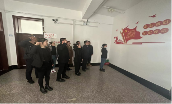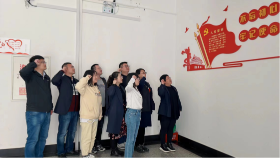 活动中,水利教研室党支部书记郑丽颖、工程造价教研室党支部书记赵爽分别带领支部党员教师重温入党誓词,在鲜红的党旗下,全体党员佩戴党徽,举起右手、握紧拳头,庄严宣誓,活动气氛庄重肃穆。党员们集中精力重温了入党誓词,回想入党之初对党和人民的庄严承诺,牢记为人民服务的使命,坚定理想信念,立足本岗位争先创优、担当作为。活动结束时,各位党员纷纷表示,要以入党誓词为重要的精神指引,时刻牢记自己的共产党员身份,充分发挥共产党员的先锋模范作用全面贯彻党的教育方针,潜心教书育人、奋斗科研报国,奋力谱写公司高质量发展新篇章。