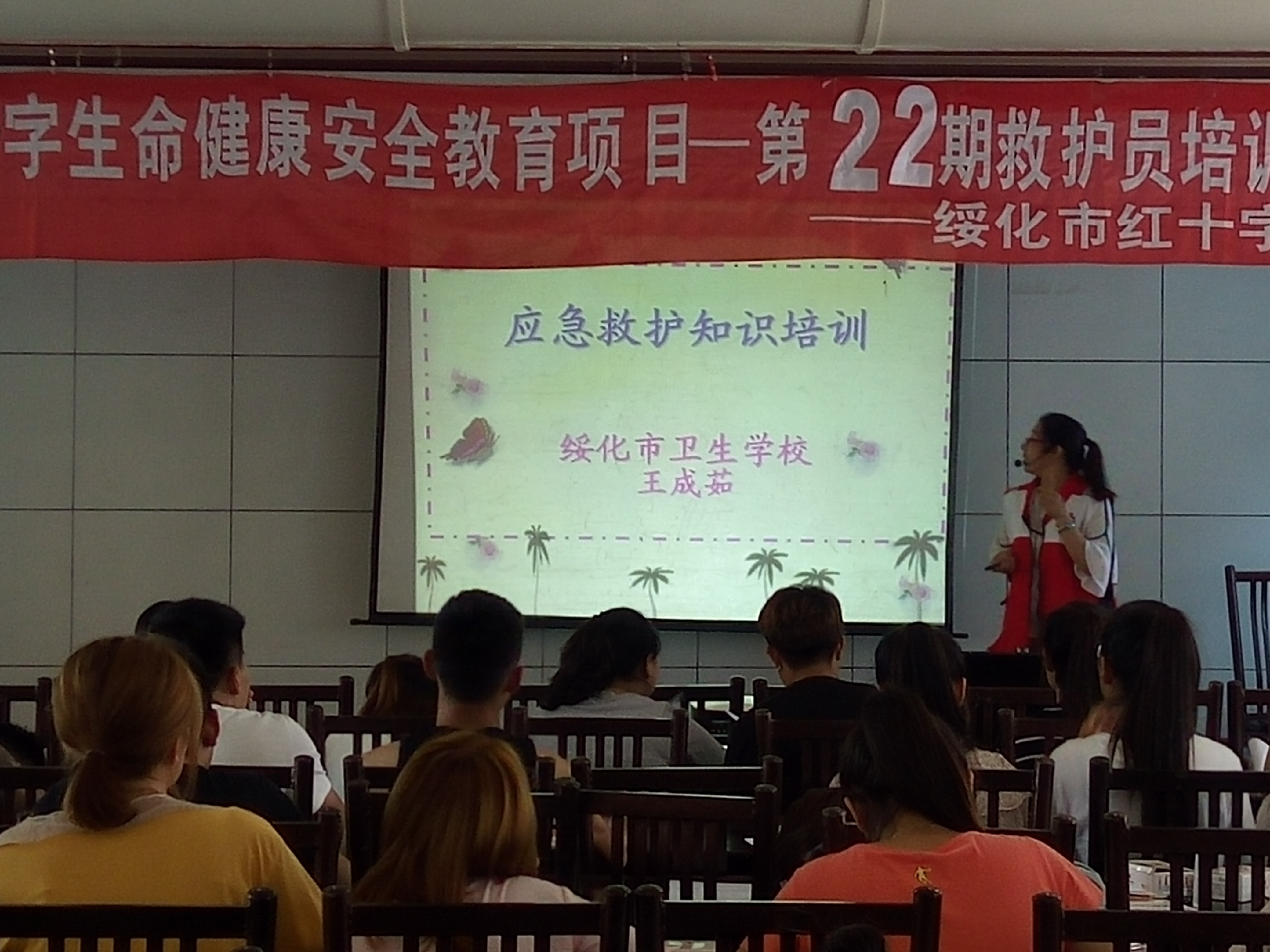 此次培训从红十字运动的起源开始,对红十字运动组织机构、职能及创始人做了详细的讲解。针对各种意外及自然灾害应急处理,进行了基本救护知识和技能培训,提高了同学们自救互救技能。主要内容包括:现场急救、创伤急救四项技术(止血、包扎、固定、搬运)、心肺复苏、呼吸道梗塞急救法、意外伤害应急技能。