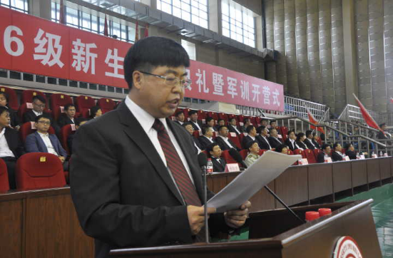 张凤武董事长发表讲话,他首先对来自全国21个省区的三千余名新同学表示热烈欢迎,向同学们介绍公司的发展历程、教学方略及近年来取得的成绩。张董事长深情寄语2016级全体新同学,希望同学们牢记“厚德载物,经世致用”的校训,为实现青春梦自力自强。并希望同学们以中国女排为榜样,树立坚定的自律意识,发扬团结协作的精神,从军训中汲取宝贵精神动力,让军训成为老员工活美好开始。