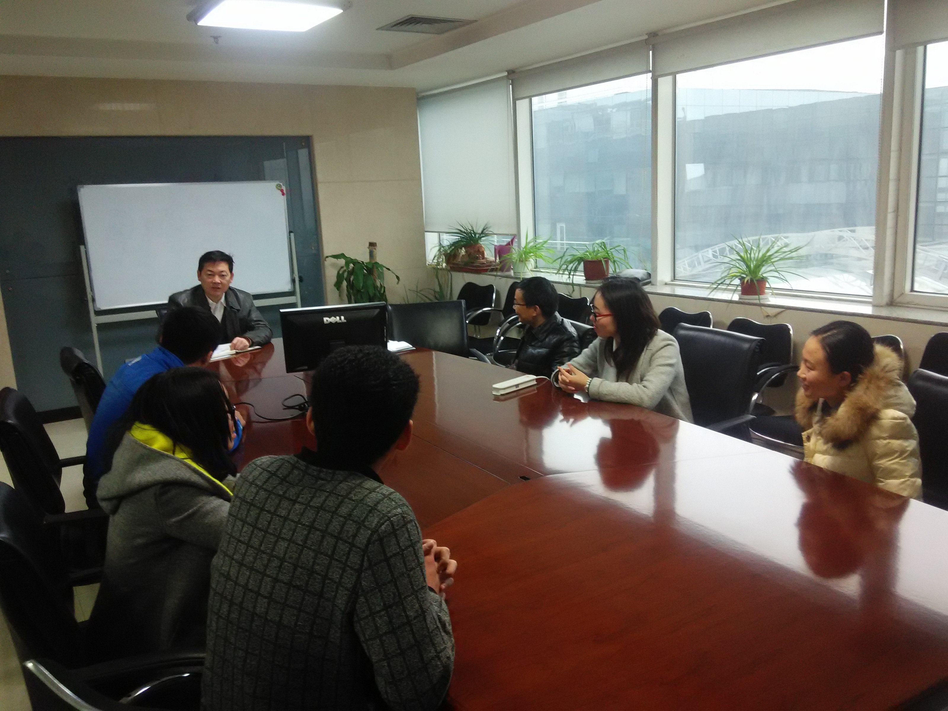 13日上午,两位老师又来到了北京全景天地科技有限公司,该公司是公司2015年建立的实习基地,共接收实习生6人(其中1人于10月中旬离岗)。公司曲总热情地接待了两位教师,对公司实习生在实习期间的表现给予充分的肯定,并对实习生在公司的发展做了规划。周老师首先对公司为实习生提供良好的工作和生活环境表示感谢,曹老师就实习生在实习期间的安全问题做了重点说明。