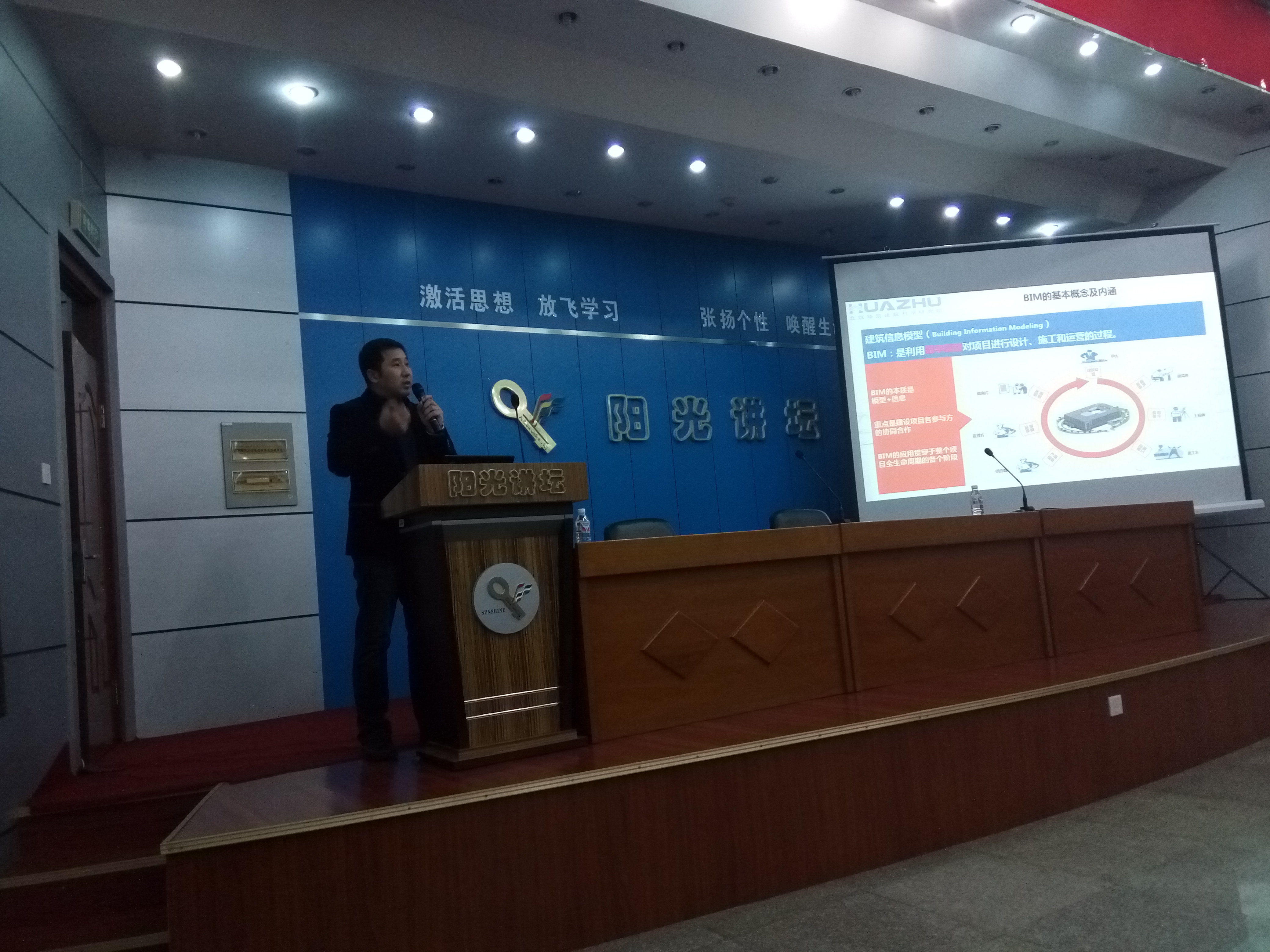 4月20日,广联达科技股份有限公司哈尔滨分公司总经理、工程师、国家级营销师,建筑行业信息化行业资深人士孔令昌在阳光讲坛为Bevictor韦德工程造价专业的师生作BIM技术主题报告。