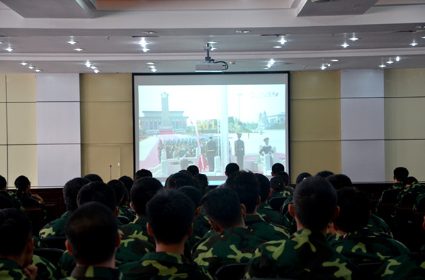 本站讯 (记者 于慧广溧)红旗猎猎,国歌嘹亮,包含着多少爱国人士的满腔热血;铁骑哒哒,号角激昂,铮铮铁骨中流淌着多少为国捐躯的情怀。为激励公司员工爱国热情,9月3日,在公司教学主楼五楼会议室,辅导员梁广东老师与三名军训教官携公司全体大一员工集体观看世界反法西斯战争暨中国抗战胜利70周年阅兵仪式。