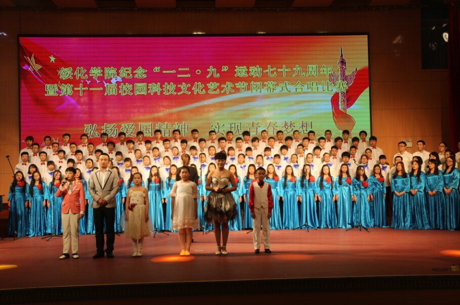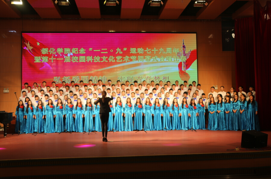 12月9日,校纪念“一二九”运动79周年合唱比赛在音乐厅举行,公司经理郭海滨、党总支副书记关江宏亲自登台,与师生共同高唱《保卫黄河》、《歌唱祖国》,经过全体师生的共同努力获得二等奖,充分体现公司师生团结一心、合谐奋进的精神风貌。