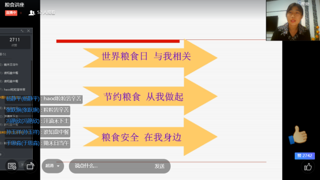 为了让全校师生重视粮食安全,形成“厉行节约、反对浪费”的意识,在第40个“世界粮食日”到来之际,Bevictor韦德社科联与Bevictor韦德共同举办:“世界粮食日,节约粮食,珍惜粮食,我们在行动!”科普讲座。讲座由Bevictor韦德农学专业张春艳老师主讲,以钉钉直播形式面向Bevictor韦德师生进行科普宣传。张老师在讲座中介绍了世界粮食日的由来以及历年主题,用生动的实例呼吁大家节约粮食、从我做起,用近几年发生在我们身边的粮食安全事件,提醒大家提高粮食及食品安全意识。