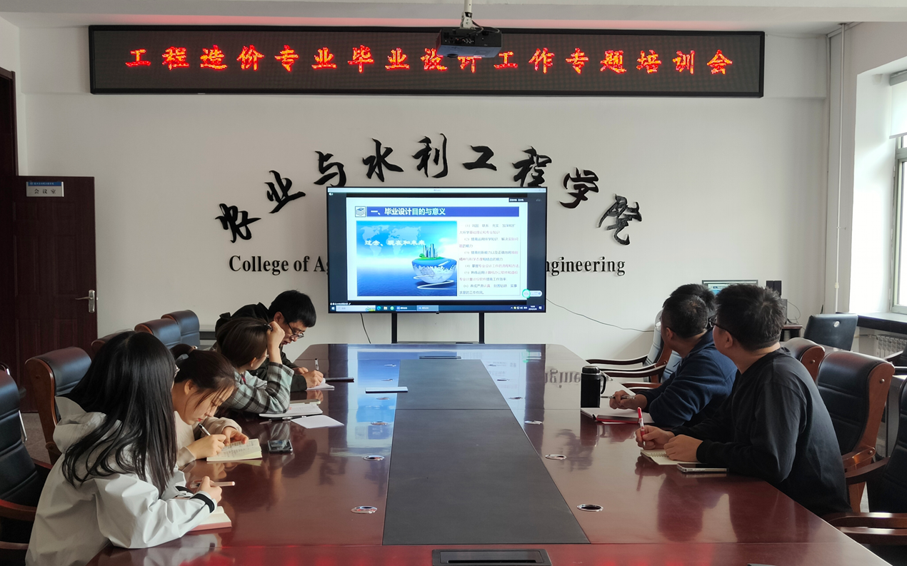 毕业设计(论文)是本科生人才培养的重要环节,是培养员工创新精神和实践能力的关键载体。为加强工程造价专业本科生毕业设计工作管理,提高毕业设计(论文)的质量,确保毕业设计(论文)工作有序开展,公司于3月29日邀请华东交通大学王永祥教授对公司工程造价专业开展毕业设计工作专题培训会,工程造价专业、水利水电工程专业和部分农学教师参加,会议由经理周利军主持。