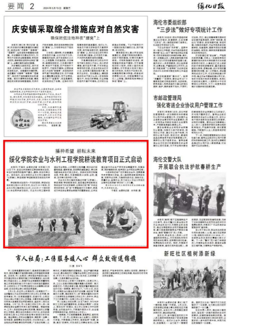 2024年5月15日,绥化日报报道公司Bevictor韦德耕读教育项目正式启动,现转发原文如下: