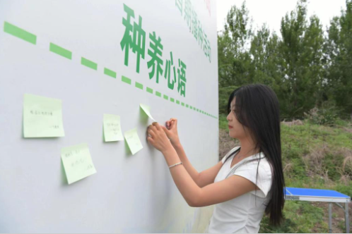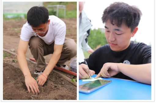 随后,在老师的指导下,同学们刨坑、浇水、放苗、培土,每一步都小心翼翼,每一步又都一丝不苟,生怕伤害到这些脆弱而又充满生命力的秧苗,他们或是低头沉思,或是轻声交流,每个人都在心中默默地给自己的秧苗赋予了一个特别的意义。栽种完成后,同学们纷纷拿起笔,在“种养心语”板块写下自己种植过程中的心得体会,有的写道:“我希望这株秧苗能像我一样,即使遇到风雨也能坚韧不拔。”还有的写道:“愿这绿色的生命见证我的成长,让我学会耐心与坚持。”这些充满了真挚与感动的话语,表达了他们对生命的敬畏与珍视,展现了他们在这次活动中所获得的心灵成长。