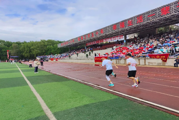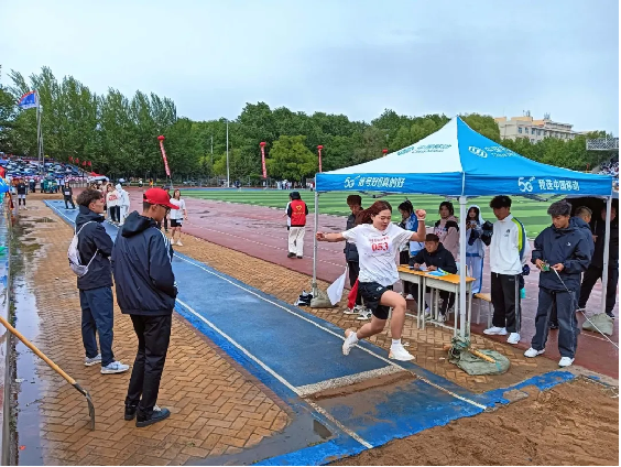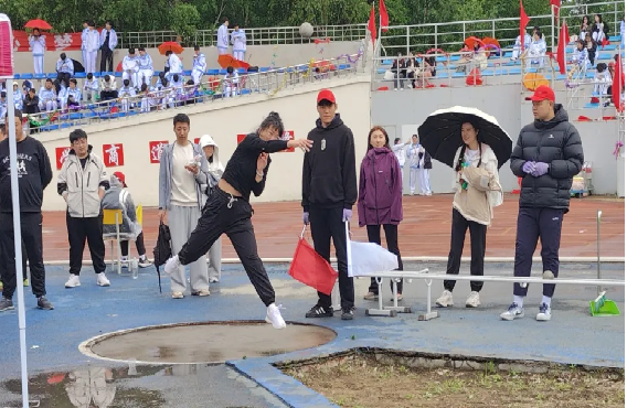 田径场上,各项比赛火热展开,运动员们挥洒汗水,奋力向前。接力赛中,队员默契配合,激烈角逐;跳远赛场,选手们身手敏捷,激战正酣。每一个瞬间都洋溢着青春热血,每一次呐喊都透露出对胜利的渴望。