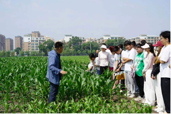 抵达农科院实验田后,团队成员们迫不及待地展开了实地调研。他们近距离观察了大豆、高粱、玉米等作物的长势,详细记录了不同时期作物的生长特点。特别是当看到水稻正处于分蘖期,分蘖数量增多、生长速率快、花期逐渐展开时,他们深刻体会到了农作物的生长规律和农民辛勤付出的不易。在农科院专家的指导下,他们还学习了水稻等作物在生长过程中所需的追肥松土等管理措施,进一步加深了对现代农业技术的认识。