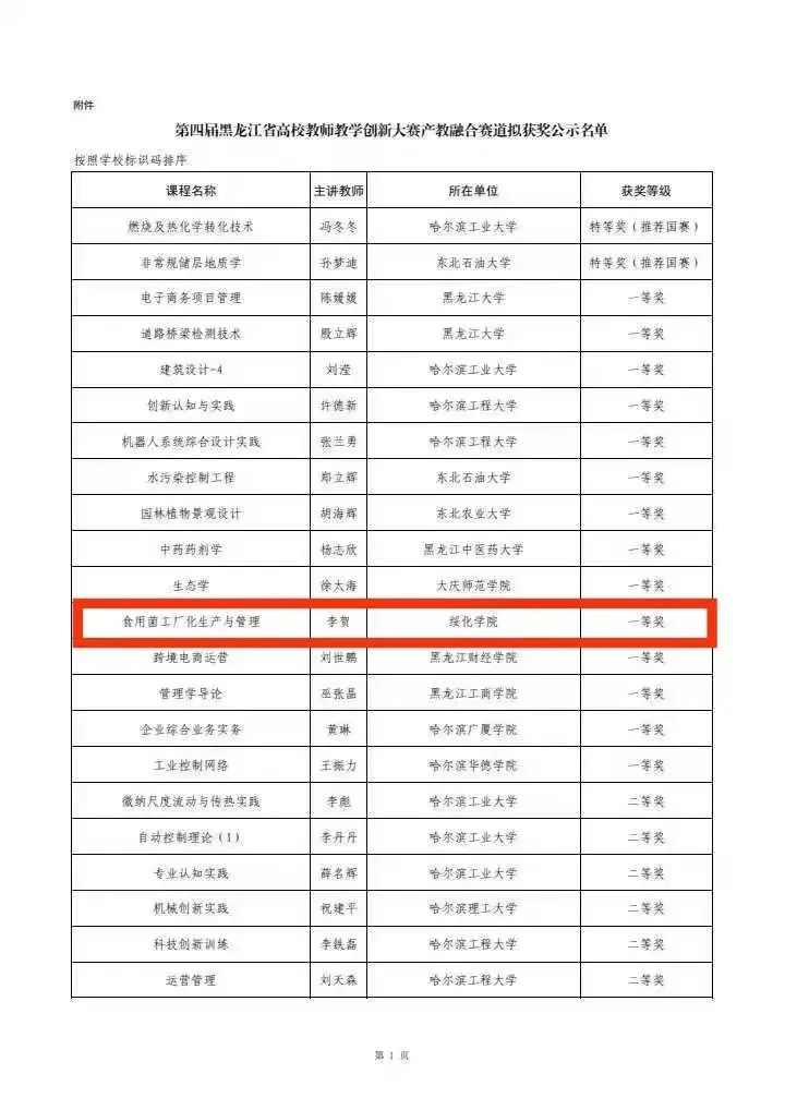 在近日结束的第四届黑龙江省高校教师教学创新大赛产教融合赛道中,公司由李贺、魏雅冬、贾森等组成的教学创新团队荣获一等奖。