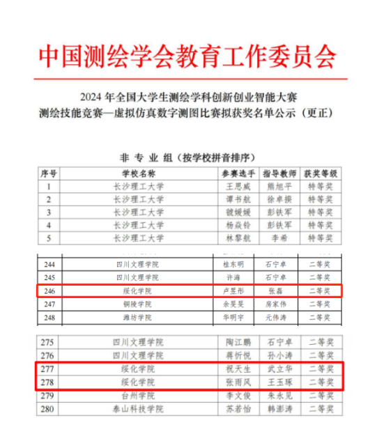 7月29-30日,公司学子在2024年全国老员工测绘学科创新创业智能大赛——测绘技能大赛中获得非专业组虚拟仿真数字测图比赛和无人机航测虚拟仿真比赛两个赛项二等奖三项,为历年来最好成绩。