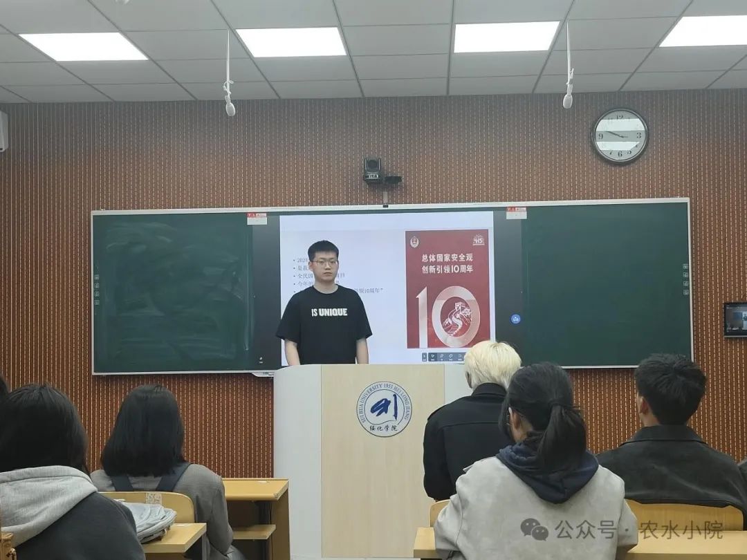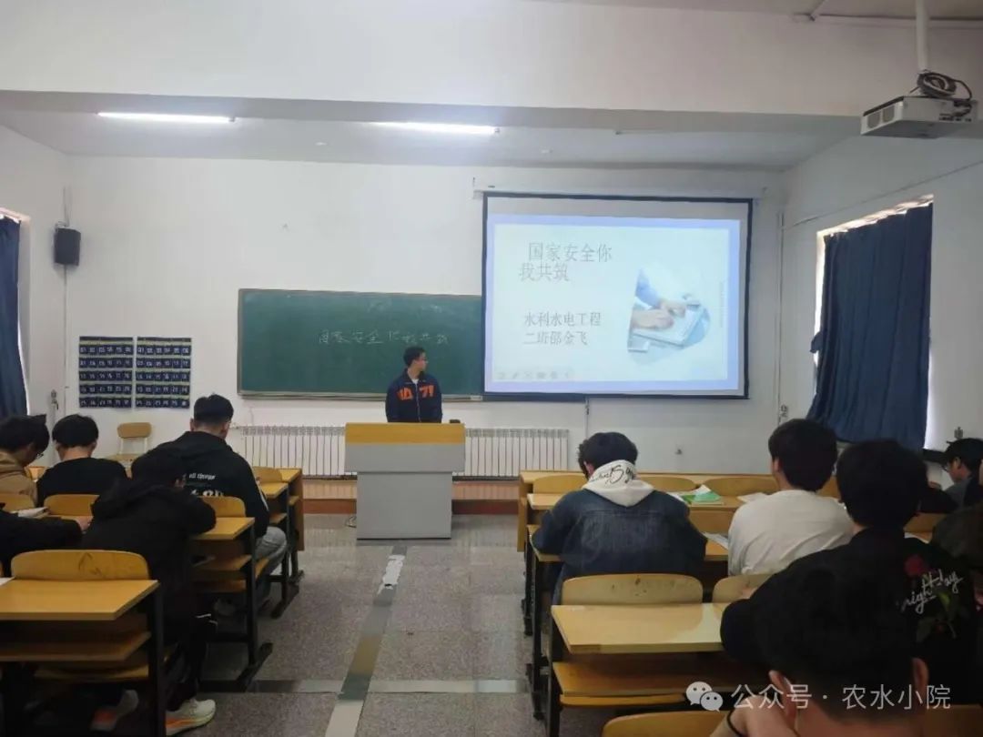 本次班会以“国家安全你我共筑”为主题,各班班长通过多媒体课件、视频案例等载体,系统阐释国家安全的内涵与外延。围绕“国防安全、粮食安全、生态安全、能源安全、产业安全”五大核心领域。班长们以东北地区振兴发展为切入点,剖析黑土地保护、水利工程建设等与公司专业密切相关的国家安全议题。同学们认真聆听,踊跃发言,分享自己对国家安全的理解,以及如何在日常生活和学习中维护国家安全。23级水利水电工程二班班长邵金飞提到要增强网络安全意识,防止信息泄露;23级农学二班班长于润泽则表示要积极传播国家安全知识,带动身边人共同守护国家安全。