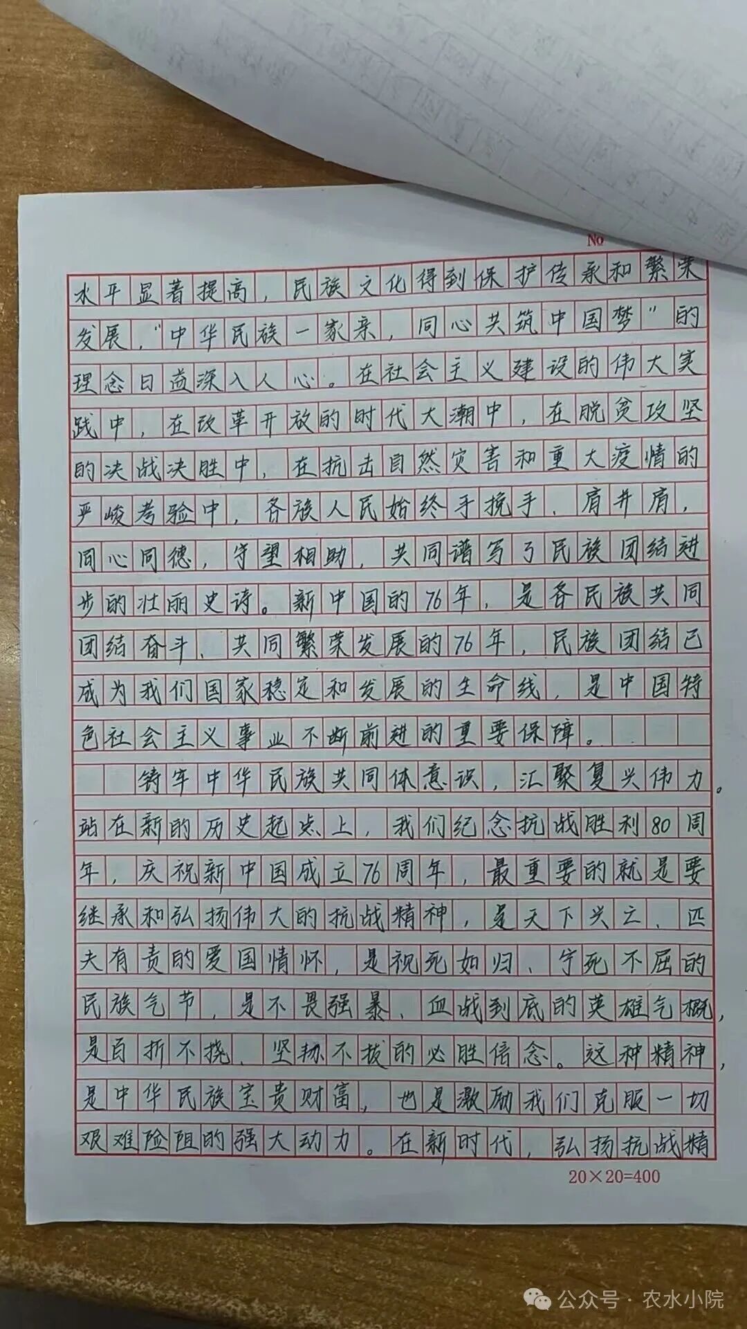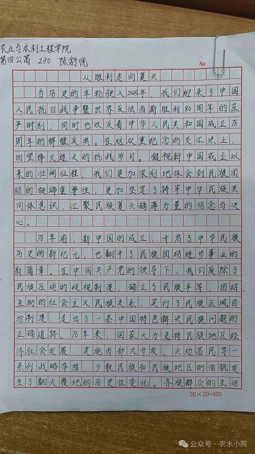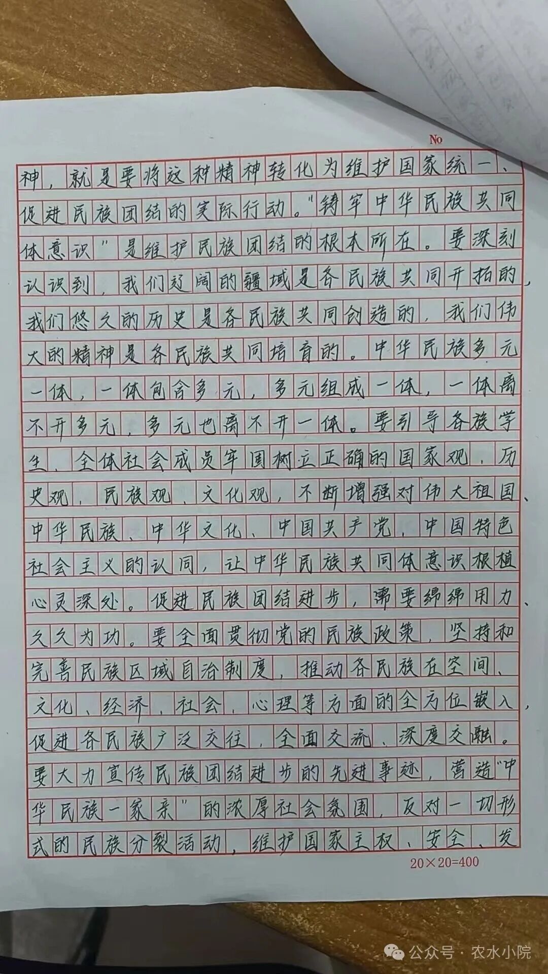 此次征文活动为员工提供了抒发心声的舞台,学子们以笔绘就民族团结画卷,传递复兴使命担当。今后农业水利工程公司将坚守与传承民族精神,激励更多青年共绘民族发展新篇。