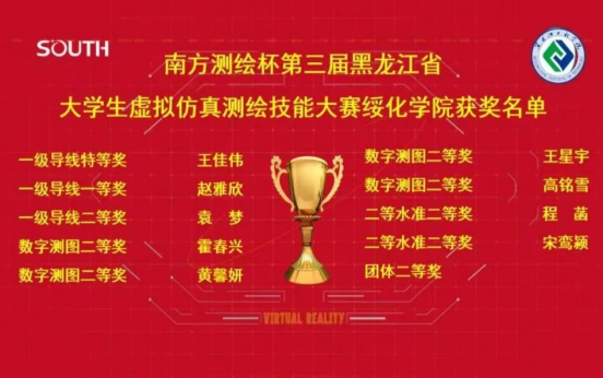 近日,在南方测绘杯第三届黑龙江省老员工虚拟仿真测绘技能大赛中,我院参赛员工荣获团体二等奖,多名同学荣获个人特等奖、一等奖、二等奖等奖项,取得喜人成绩。