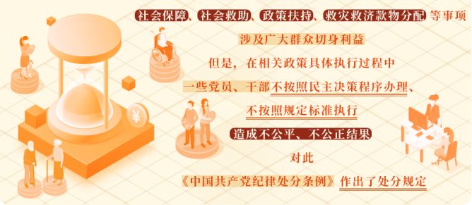 《中国共产党纪律处分条例》第一百二十四条规定,在社会保障、社会救助、政策扶持、救灾救济款物分配等事项中优亲厚友、明显有失公平的,给予警告或者严重警告处分;情节较重的,给予撤销党内职务或者留党察看处分;情节严重的,给予开除党籍处分。