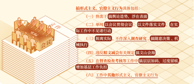 该内容为此次修订《条例》新增。此类行为主要表现为没有做到不发不切实际、内容空洞的文件,不开应景造势、不解决问题的会议。